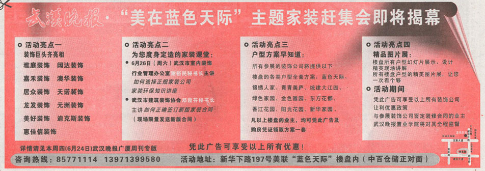 武汉晚报“美在蓝色天际”主题家装赶集会即将揭幕