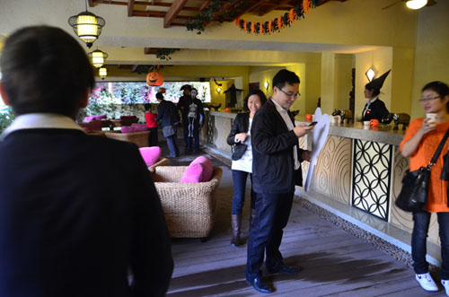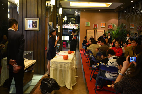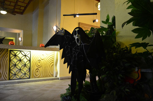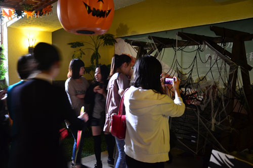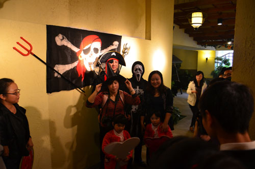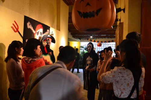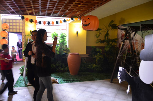 接下来,在西马名仕三楼园林里精心布置的恶魔活动区内,来宾着实过了一把“鬼“瘾。张着血盆大口的魔鬼让人毛骨悚然,更有拿着大板斧的独眼龙怪兽在园区游走,暗淡的角落里蜘蛛网结满墙壁,悬挂式的南瓜灯发出可怖的怪笑,无头蝙蝠侠张着黑色斗篷在摇曳……在加上园林幽幽流水和树木,让人直觉走入了一个玄妙诡谲的世界。最后,被藏在角落各处的大糖果被当做礼物来犒赏惊魂未定的小朋友们,惊吓之余的惊喜为这次异界之旅画上了完美的句号。