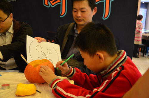 在墙角一隅的“最欢乐南瓜灯”家庭引起了记者的注意,在和他们的攀谈中,南瓜灯的“首席执行长”张先生说,平时工作太忙了,很少陪孩子,今天这个活动,虽然过程简单,时间也不长,可是女儿却玩得这么开心这么乐,感谢西马名仕提供了这样难得的亲子机会。
