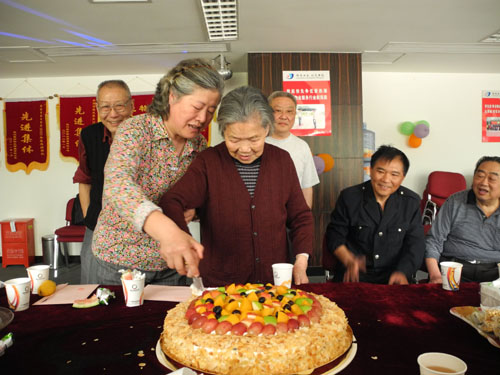 活动现场分为2个环节:互动游戏和庆祝生日。为了让老年业主彼此间能有很好的认识和交流,主持人增加了“自我介绍”小插曲,大家热情大方介绍自己的姓名、房号和兴趣爱好,同时物业客服人员将这些细节统一进行记录,为后期组织业主特长活动做铺垫。在征求了老年业主的意见后,互动游戏“猴子卖桃”顺利进行,你看爹爹那敏捷的动作,婆婆洋溢的笑容,还有大家相互配合的默契,时而散发出的欢呼声、鼓掌声犹如一段跌宕起伏的音乐不断响起,让整个活动融入了温馨和快乐……