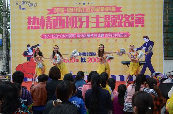 除此以外,美联·德玛假日于吴家山北冰洋广场分会场还另举办了“热情西班牙主题路演”活动。此次路演以西班牙风情为主题,开场一段热情火辣的斗牛舞将现场观众带到了大洋彼岸的西班牙。此次演出阵容之强劲,为吴家山居民带去了一段充满异域风情的时光。从带着热带气息的草裙舞,到魔幻而充满趣味的近景魔术……现场观众更是积极参与互动环节,与魔术师一起变魔术。除了精彩的节目,参与有奖问答的观众们还得到了现场送出多种精美礼品。
