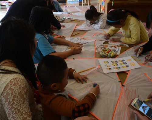 活动当天,到场的孩子们用五颜六色的画笔为各自心中的春姑娘画了一封“情书”。风筝上有聪明伶俐的喜羊羊,有笑容可掬的哆啦A梦等等可爱的卡通人物;有穿着鲜艳衣裳的花朵,迎风微笑的小草……孩子们用他们充满童真的独特视角表达着对春天的喜爱。