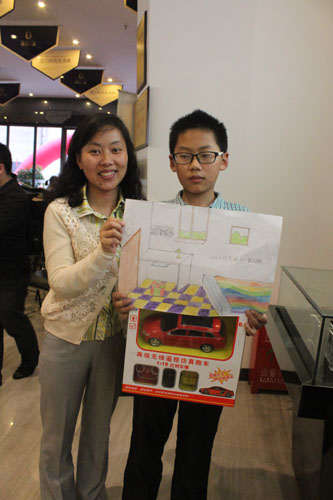 比赛开始后,小记者们跃跃欲试,摩拳擦掌,有的心急地立即创作,有的则和爸爸妈妈商量。“妈妈,我想画座城堡”、“就画我们自己的家吧”,小记者们你看我,我看你,空气中充满了浓厚的火药味。