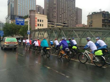 尽管天公不作美,但在活动现场还是聚集了200多位前来参加活动的人们,他们的到来只为兑现先前绿色骑行的约定,只为对美联奥林匹克花园提供一份支持。此次骑行的难度比以往都要大,但是一切都顺利进行着。骑行中途在桥下避雨时,他们依旧谈笑风生,热情高涨。经历一个半小时的骑行,骑行者们顺利到达终点——武汉市唯一的运动主题大盘美联·奥林匹克花园。