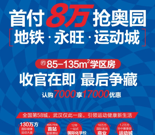 4期巴黎奥运村位处小区中心地段,85-135㎡学区房收官特惠,现在购房有“7000享17000”房多多电商特惠,永旺旁地铁口,首付8万即可拥有,坐享地铁、永旺双重升值礼遇。【国际热线】:8333 3333