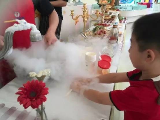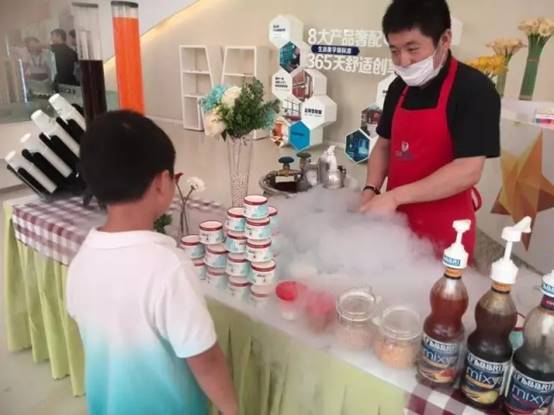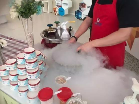 他们在用氮气做冰淇淋,感觉还蛮有意思的样子。把液体的食材放进去后,瞬间就成了冰淇淋,口感还不错呢。各种各样的料都加进去尝试了下,吃完后感觉整个人都不好了。
