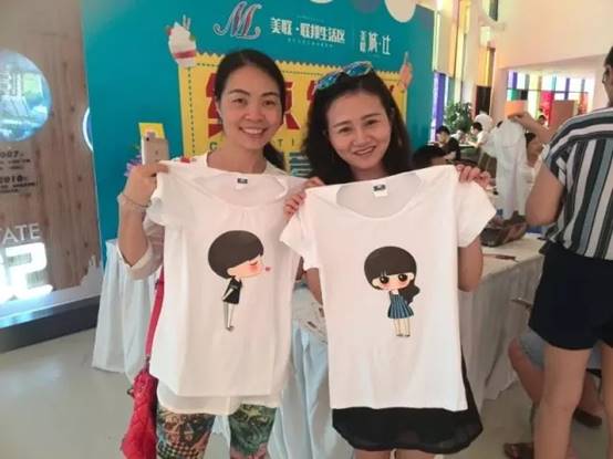这是他们搞的另外一个活动:创意T恤DIY的台子,可以在T恤上打印照片,楼主把上次出去旅游的照片打印出来了,感觉还蛮清晰的。也可以自己设计图案,打印出来。