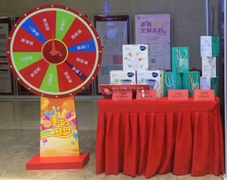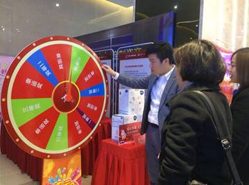 这样的钜惠让大家都跃跃欲试,眼前的幸运儿就有幸能够参与抽奖,用力一划,转盘转动,然后缓缓停住,大家都紧张地看着转盘,最终指针停下,好礼在大家的赞叹下被这位幸运儿抱回了家!