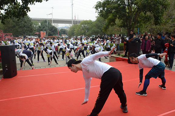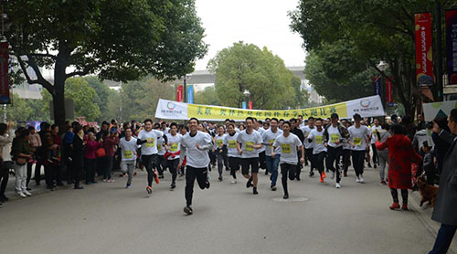 为避免赛事中出现腿部抽筋或其他伤害,赛事主办方邀请专业健身教练带参赛选手们进行热身,随着热身运动的展开,氛围开始燥动起来。热身过后所有选手在起跑点集合,蓄势待发,只等枪响的那一刻。上午十时,伴随着裁判员的一声令下,选手们奋力开跑,以五环广场为起点,经过一期、五期、学校、四期、二期园区,再返回一期园区,到达终点线,全长3.6公里,沿途设置有4个打卡点,选手分别集齐打卡点的四个手环,才可视作跑完全程。只见选手们身着统一的赛事T恤,穿梭在园区的赛道上,目标在前方,领头的奋力向前,后来的也不甘示弱,你争我赶,赛道两旁挤满了前来加油助威的街坊邻居们,选手所到之处好不热闹。