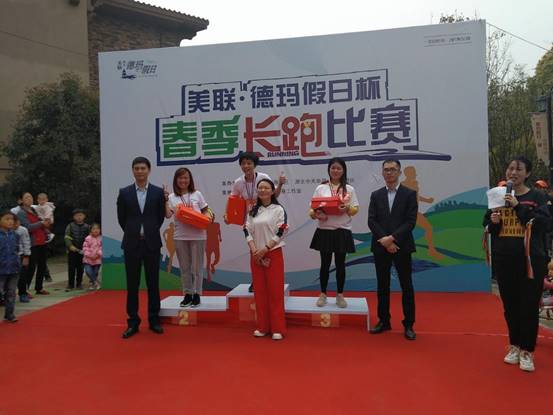 (女子组第一、二、三名上台领奖)