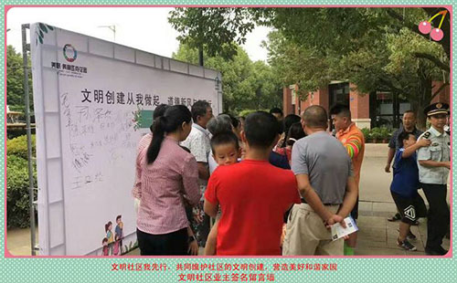 大家纷纷在签名墙签上姓名,共同建设文明社区我有责!