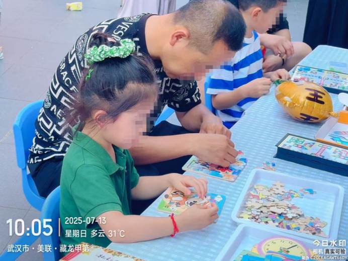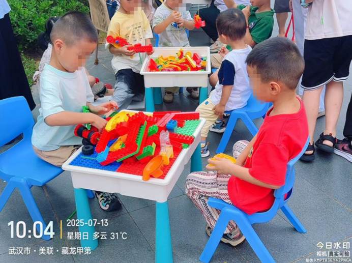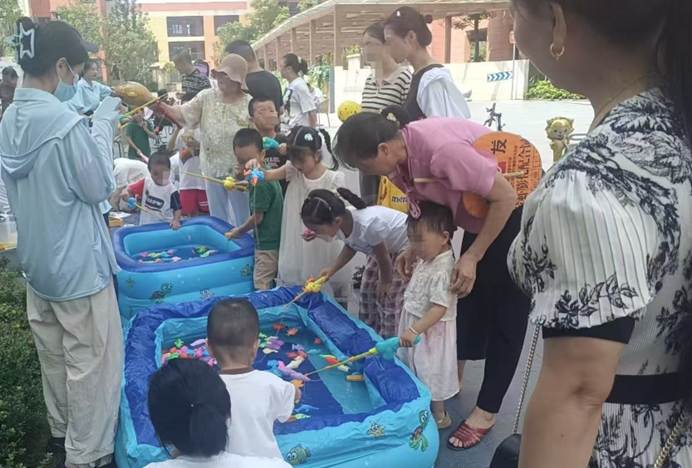 除了贴心的饮食服务,物业还为小朋友们打造了趣味十足的活动天地。动物拼图区,孩子们专注地拼接着手中的碎片,在锻炼动手能力的同时,也认识了各种可爱的动物;儿童垂钓区,小钓手们屏气凝神,体验着收获的喜悦;积木搭建区,孩子们发挥无限想象,搭建出心中的梦幻城堡。