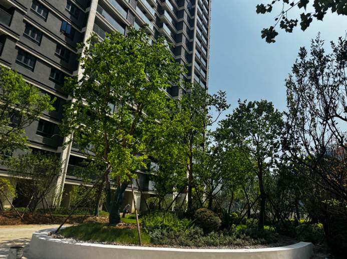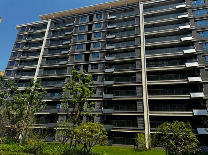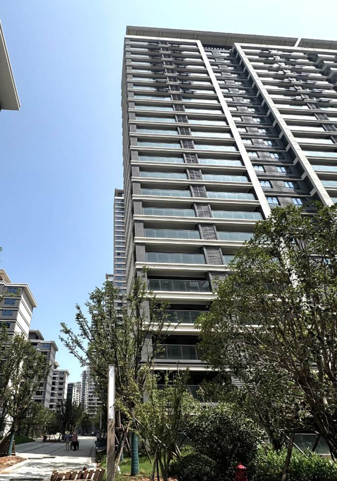 8#楼公区装修完成,外墙涂料完成95%,入户门安装完成;室内收尾完成,架空层装修完成55%。