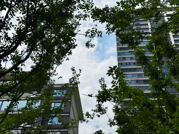 拉开窗帘,眺望楼下尽是生机勃勃,