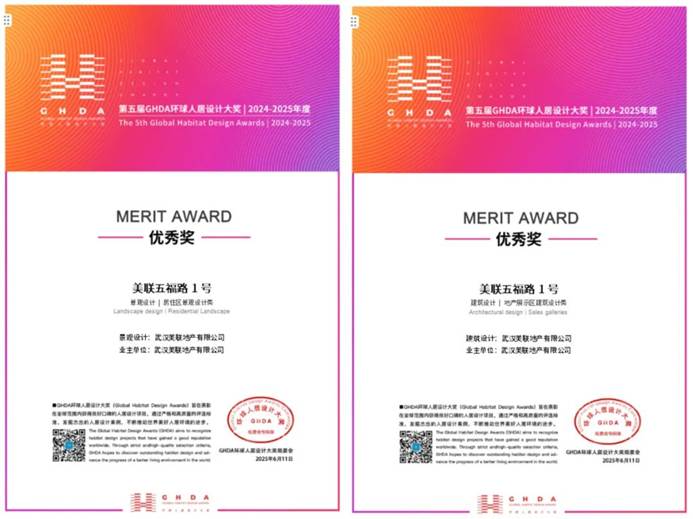该奖项由新微设计平台与GHDA组委会联合发起,以“严格、高质量”著称,旨在表彰全球范围内口碑卓越的居住设计。此番连获两项国际大奖,标志着五福路1号在“美学、功能、人文”三维度均达到世界级水准,也再次印证了武汉高端人居新标杆。