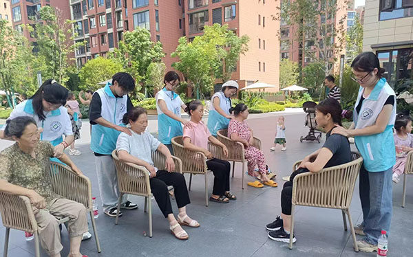 除了测量血压,志愿者们还为老人们进行颈肩推拿。他们用温暖而有力的双手,为老人们缓解颈肩部位的疲劳和酸痛。在推拿过程中,志愿者们与老人们亲切交谈,了解他们的生活情况,倾听他们的心声,让老人们感受到了浓浓的关爱。