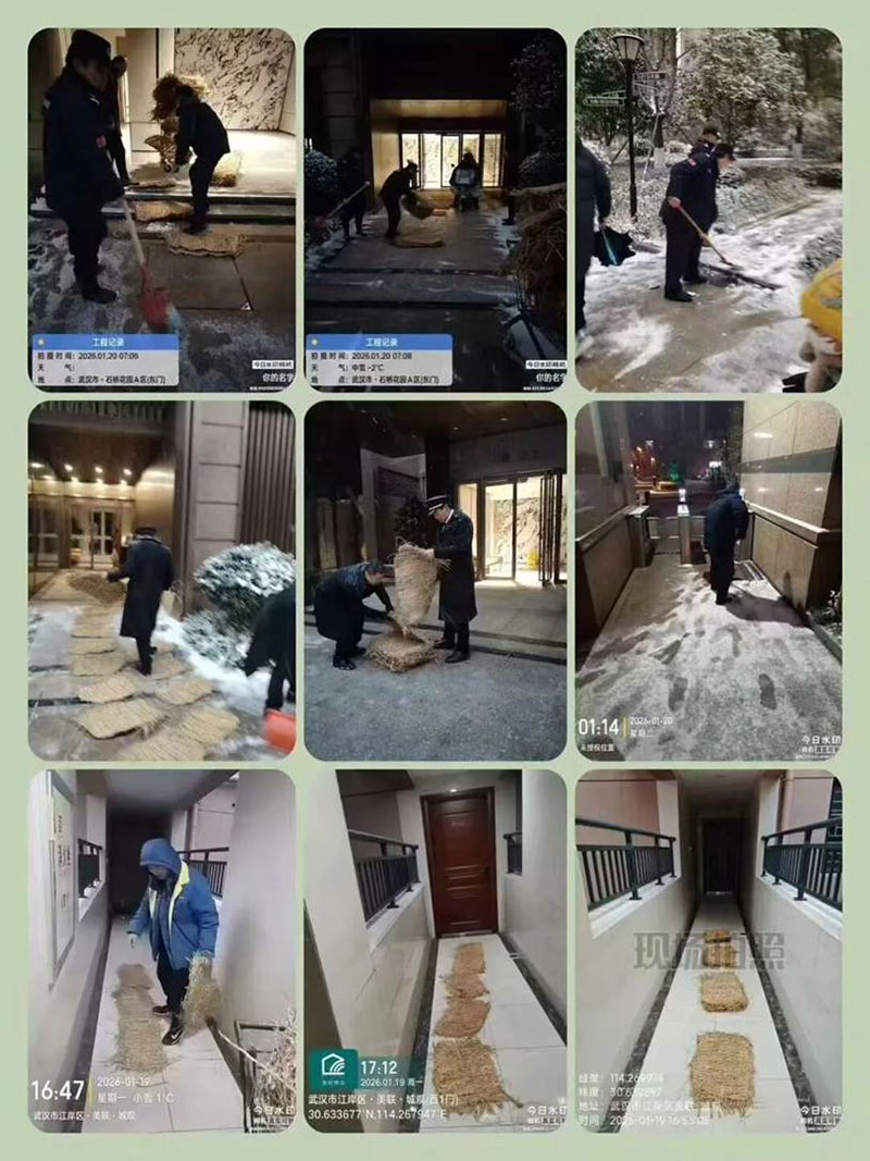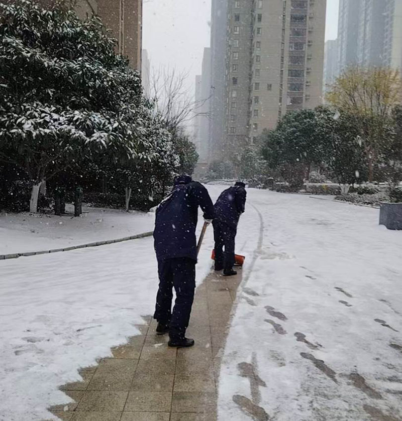美景背后,还有一支“隐形战队”默默守护。19日气象预警刚挂出,物业提前做好准备。雪在不停下,铁锹与柏油碰撞声也不时划破寂静,主干道先铲后撒盐;单元口同步铺下防滑草垫,不到2个小时,园区主干道全部见黑,鞋底踩上去“嚓嚓”作响,却一点不滑。傍晚,雪停人不停。物业不间断组织清冰,加强巡查,随时补撒融雪剂……工作人员们有条不紊,在背后默默守护小区业主,雪会化,温度不降,让业主能安心赏雪。