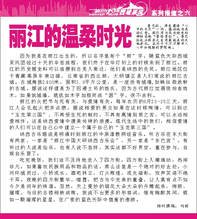 丽江的温柔时光-蓝色天际西域采风系列报道之六