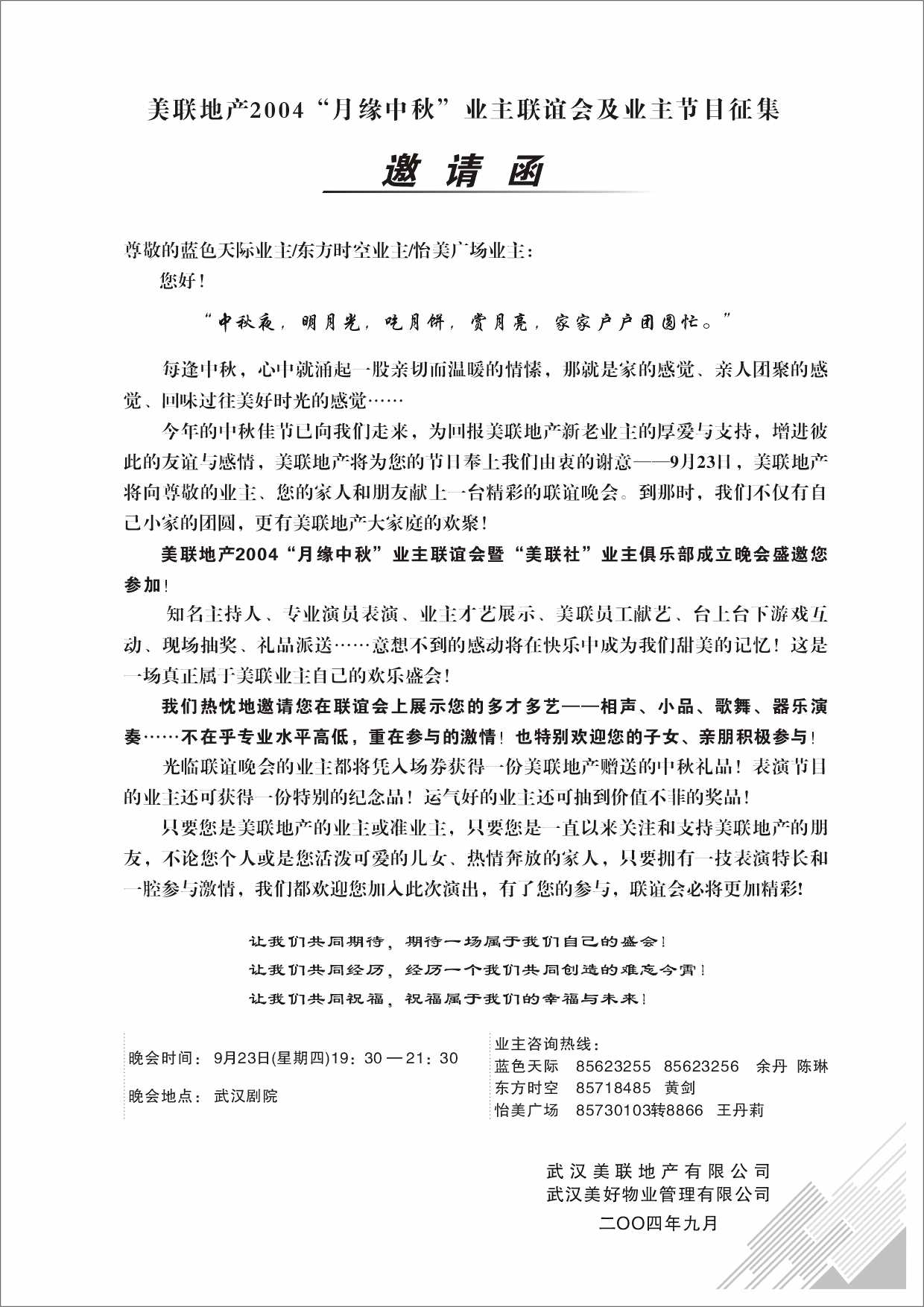 2004“月缘中秋”业主联谊会暨“美联社”成立晚会邀请函