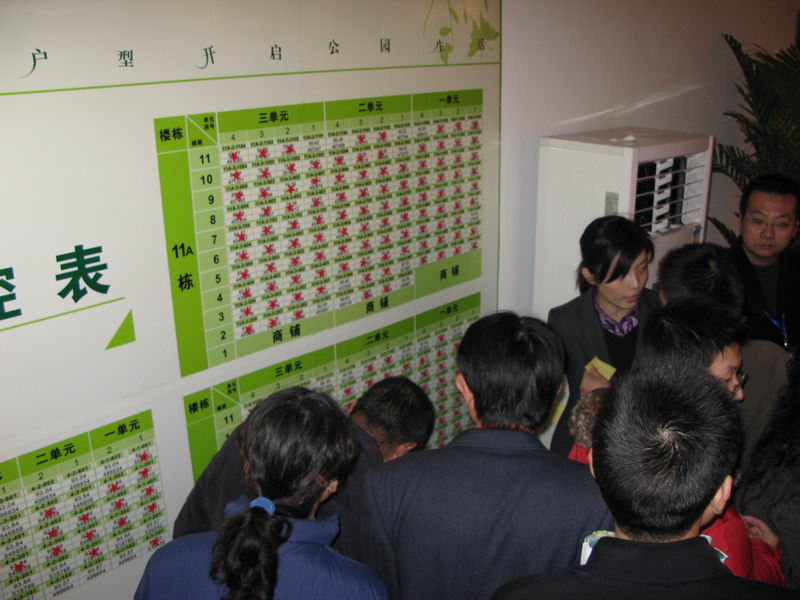 等候区客户在销控表前关注选房结果
