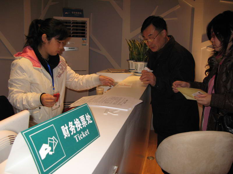 财务换票处工作人员细心为客户办理相关手续