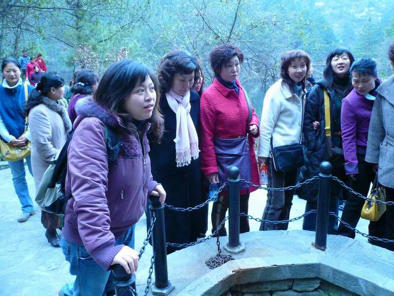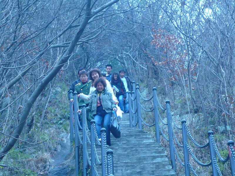 古语说:上山容易下上难。上山已经不容易了,下山也就更难了。下山通道号称“木兰铁索天梯”,“天梯”陡峭崎岖,仿佛90度直角,悬于山体之上,从上往下看,令人头晕目眩。大家屏息静气,小心翼翼的扶着铁索,沿着一千多级天梯直下,终于在双腿打颤的状态下,胜利凯旋!