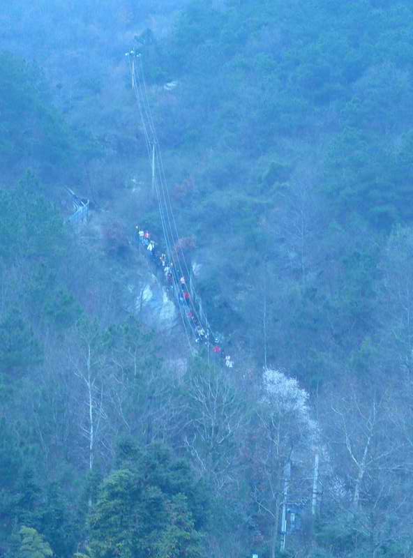 (远观木兰天梯,如同一条巨龙盘在山腰上,险峻!)