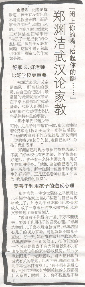 郑渊洁武汉论家教(4月30日楚天金报)