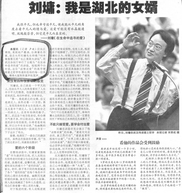 刘墉:我是湖北的女婿