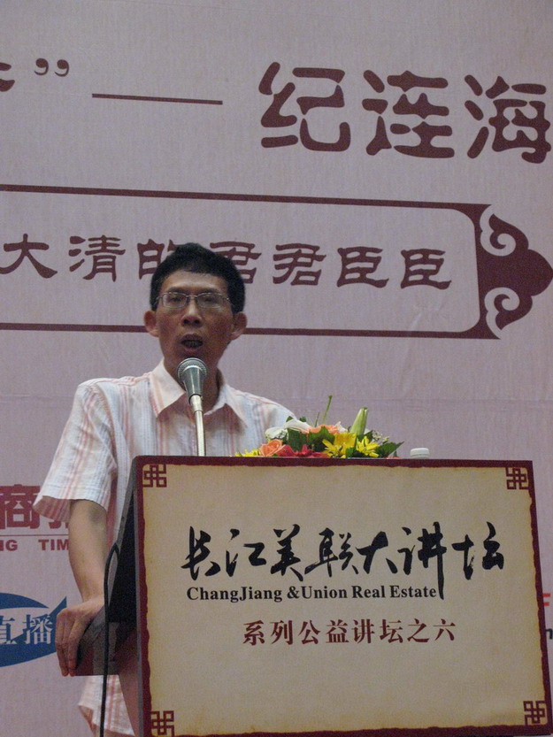 纪连海演讲前,主办单位对市民做了抽样调查,因此,应听众要求,整个演讲纪连海紧扣“周培公、明珠与康熙,邬思道、李卫和雍正”这些历史上的名君名臣展开,引经据典,鞭辟入里,将这些君臣故事的历史真象还原在听众面前。