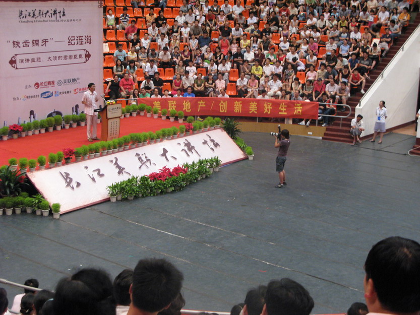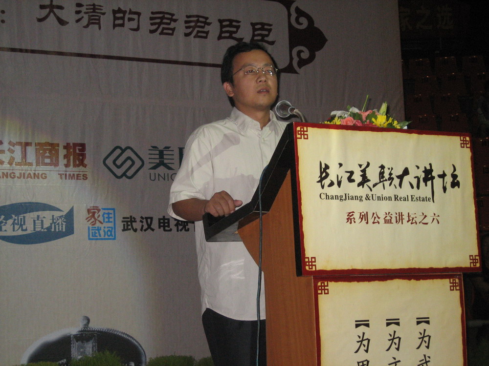 8月19日上午9时30分,纪连海应美联地产、长江商报的邀请做客长江美联大讲坛,纪连海以其评书式的激情演讲,将大清王朝的君臣故事讲说得酣畅淋漓,为八月流火的江城带来了一道历史“盛宴”。