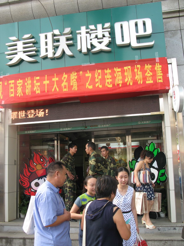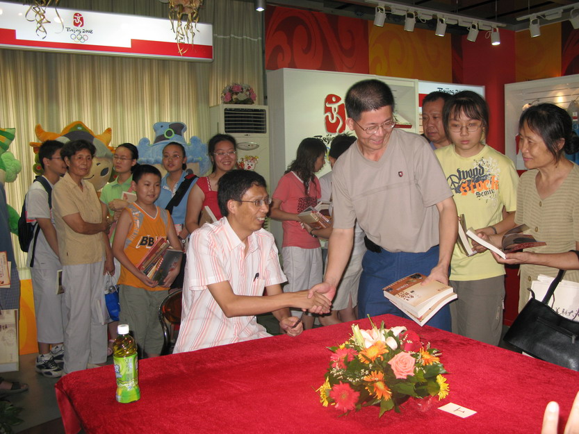 当天下午15点,纪连海来到中山公园正门旁美联楼吧进行现场签售,和武汉的读者“粉丝”们亲密接触。