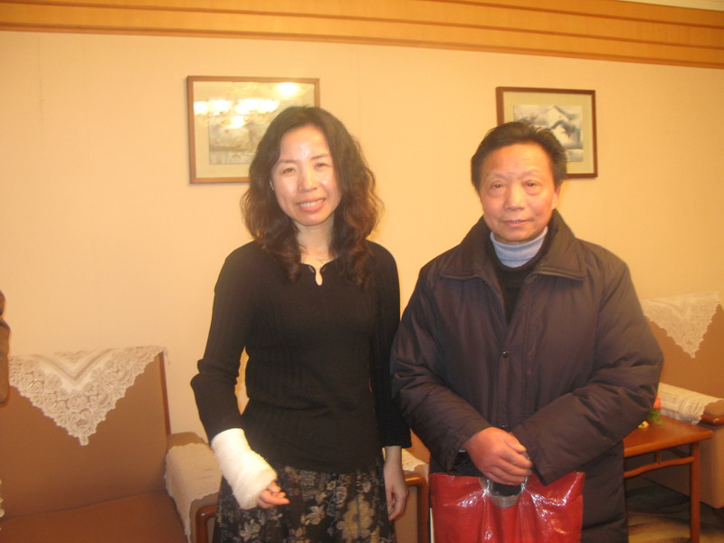 中华诗词学会会员、湖北省作家协会会员盛纲泽为隋丽娟老师作诗一首并赠送隋老师,两人亲切合影