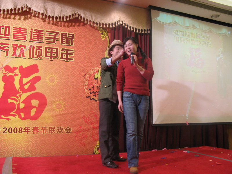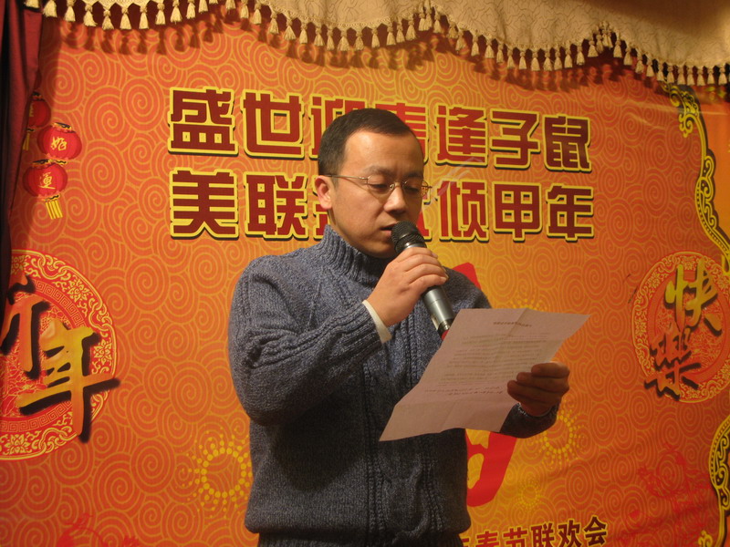 当天下午年会会场内张灯结彩,年味甚浓。五点整,新春联欢会正式开始。首先由卞总代表公司致新年贺词,他表示,2007年,公司狠抓工程质量,加强营销团队建设,各项业务保持了持续稳健的发展,在大家共同的努力下取得了良好的业绩:美联•公园前热销江城,长江美联大讲坛如火如荼,学校各项建设稳扎稳打。最后他代表公司领导向大家致以节日祝福。
