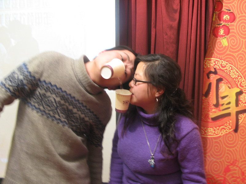 “纸杯传情”游戏参与者亲密合作
