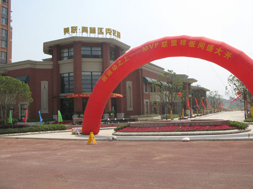 5月2日,正值五一假日期间,美联奥园MVP联盟精装样板间盛装开放。当天现场,张灯结彩,彩旗飘飘,到处呈现一派节日喜庆。上午9点,售楼部一开门,就陆续有客户来到现场,在售楼员的陪同下参观了样板间和即将完工的运动城。