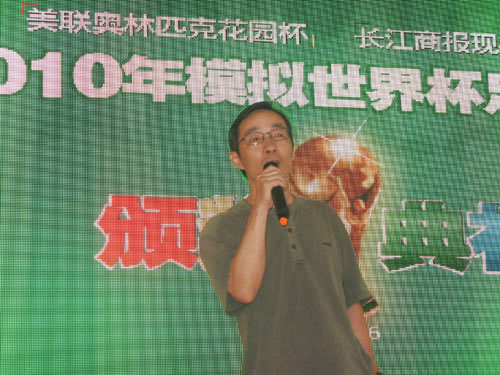6月6日,在热情洋溢的足球宝贝开场舞中,美联·奥林匹克花园杯”2010年模拟世界杯足球赛颁奖典礼隆重拉开帷幕。当天上午,美联奥园运动城内热闹非凡,激情四射,一百多名武汉市业余足球队代表欢聚一堂,兴高采烈地参加此次活动。出席此次活动的不仅包括湖北省体育局足球运动管理中心副主任尹进波、长江商报副总编严强华、湖北省足协裁判委员会主任张铮等相关单位领导,湖北籍著名球员林强、王文华、肖笃寅等人也出席了当天的颁奖仪式。此次比赛颁奖,共评出冠亚季军三个奖项,以及精神文明奖、优秀俱乐部等奖项。
