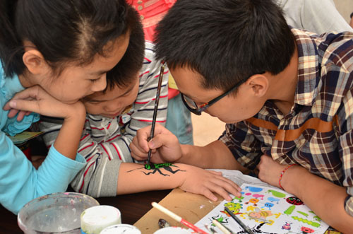 原定于十点半开始的活动,九点半运动城的门前已经挤满了前来观看演出的业主和小朋友,整个剧目情节曲折有趣,随着剧情的发展,将“真、善、美”的真谛传递给每一个小朋友,大家跟剧中人物一起,时而紧张、时而欢笑,跌宕起伏的故事情节,将演出一次又一次的推向了高潮,掌声欢呼声响彻美联奥园五环广场。演出过程中,小朋友凭入场券免不仅能免费各式各样的气球,还能体验时尚个性的“虫虫脸”涂鸦,整个奥园俨然成为了一个真人“虫虫国”。