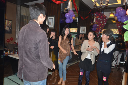 11月11日晚,西马名仕营销中心灯光迷离、音乐醉人,近百名都市精英相聚于此共庆百年一遇“光棍节”。