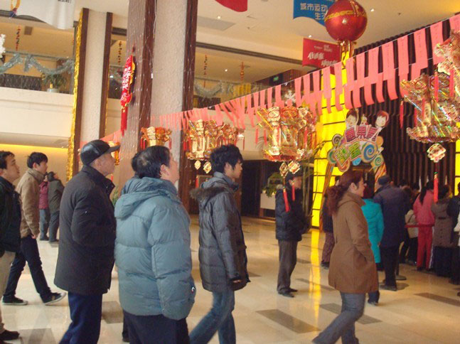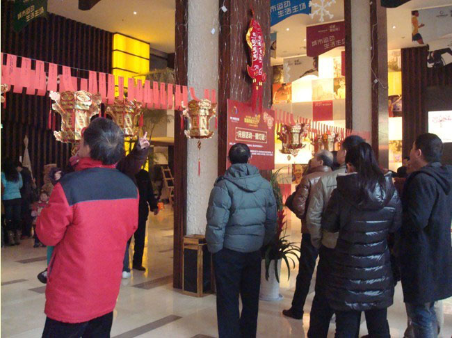 过元宵节岂可少了五彩缤纷的灯笼,美联奥园四处张灯结彩弥漫着欢乐的气氛,而彩灯中也蕴含着奇趣玄机。美联奥园运动城一楼大厅特设灯谜台,所有与会者都可以凭灯谜券在工作人员处一次性领取2张灯谜谜面,凡在90秒的时间里猜对全部谜底者可凭灯谜券于礼品领取处兑换花灯一盏,而猜中一个的则可获赠汤圆一包,甚至没猜中的也能得到纪念品一份。许是被花灯的绚丽所吸引,百余人齐做动脑操,争先猜灯谜;许是被精美的小礼品所诱惑,大家发散思维开动脑筋,为了赢取自己心仪的礼品而努力。