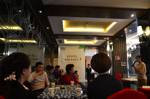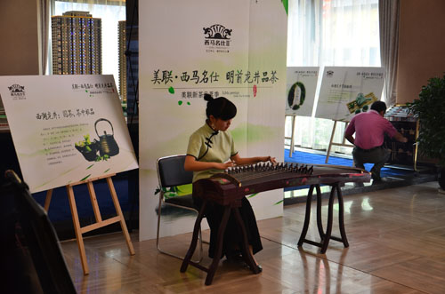 4月21日,西马名仕营销中心琴音清雅、茶香四溢,近百名都市精英忙里偷闲齐聚一堂,品鉴明前龙井香茶。