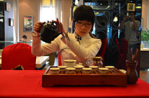 专业茶艺师展示另一种功夫茶的冲泡工艺