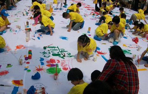 6月2日,美联·奥林匹克花园(简介 配套 价格 户型 团购 业主论坛)五环广场上分外热闹,来自江城各地的近300名小朋友聚集在这里,参加由长江商报与美联·奥林匹克花园共同举办的“千名童心绘奥园首届国际少儿涂鸦大赛。
