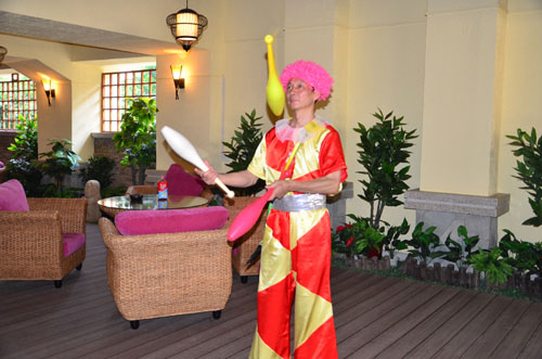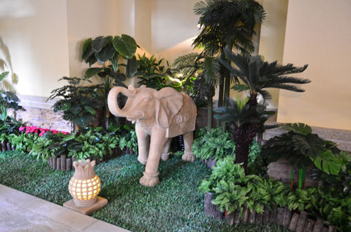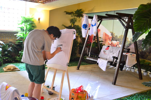 活动当天,虽然下着小雨,但客户热情不减,陆续有客户踩着细雨而来。现场采取全东南亚风格装饰,藤椅秋千、榭栏、实木地板、雕塑等景观设置,清新自然,客户身临其境就会产生一种很强烈的感官体验。在身着热带异域服饰的工作人员的引导下,客户进入架空层泛会所参观,看房有惊喜,活动期间看房的客户会获赠个性手绘T恤一件,客户指定喜欢的东南亚风情人物或园林图案,并由专业手绘人员现场手绘于T恤相赠,在绘画期间则由置业顾问引导客户参观样板景观。