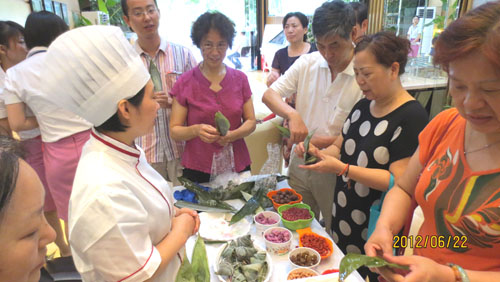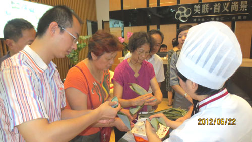 6月22日,美联·首义尚景营销中心众多客户欢聚一堂,共同度过了一个特别的端午节。首义尚景准备了包括粽叶、糯米、红枣、花生、蜜饯等丰富的原材料,并由专业老师示范教授客户包粽子,众多客户兴趣盎然的学习并乐在其中,并积极参与接下来的包粽子比赛活动,经过激烈的比赛最后决出冠亚季军。