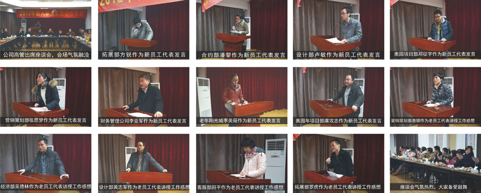 座谈会上,公司董事杨总首先致欢迎辞,并代表公司感谢各位同事一年来为美联地产的发展所做的努力。随后,新入职员工一一自我介绍,使领导及同事对彼此有了新的了解。座谈会上气氛热烈,公司各部门骨干老员工介绍了自己的工作经验和所取得的成绩,激励新员工立足本职工作,做最优秀的自己,在美联大舞台一展所长。新员工代表也纷纷发言,结合各自的工作岗位情况,汇报自己对公司和工作的感想,一致表示在今后工作中努力学习,出色完成各项任务,为公司发展奉献力量,也希望公司能给予更多的帮助,实现个人能力和职业的提升,尽快适应公司快速发展的需要。
