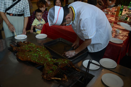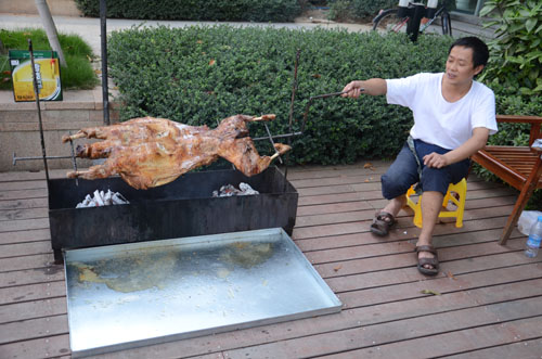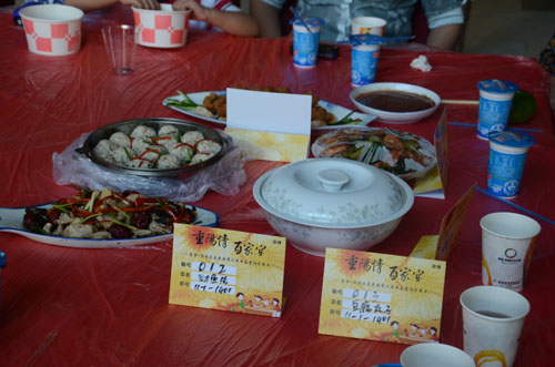 13日中午12点奥园“重阳节 百家宴”活动正式开始,主持人热情洋溢的邀请业主们介绍菜肴,每个业主都非常积极的阐述自己的做菜原料,调料、火候及配料等,更有业主延伸品位,介绍菜肴对身体的好处,如“美容养颜汤“、“紫菜包饭”、“牛肉芋头煲”、“南瓜饼”、“番茄鸡蛋”等,真是琳琅满目,色香味俱全!再加上物业为业主精心准备的炭火烤全羊,更是新颖别致,撩人口味!