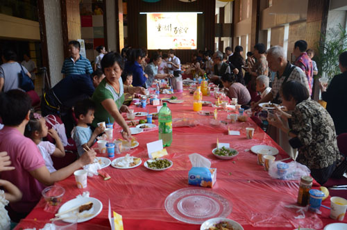 (通讯员:谢珍)2013年10月13日是农历九月九日重阳节,来自美联·奥林匹克花园的老年业主朋友们共计80余人欢聚奥园运动城,一起品尝各个家庭精心烹饪的特色菜肴,分享物业为其准备的美味烤全羊,并交流养生保健知识,热闹非凡!