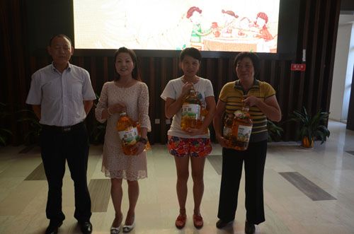 “都很可口,无法分辨,很好吃啊!”其中一个品尝代表如是说。经过二十余分钟7位评委的细心品尝,最后决出最佳人气奖——香辣虾,最佳品相奖——美容养颜汤,最佳美味奖——梅菜扣肉。之后进行颁奖典礼,你瞧阿姨的笑容多么深情,劳动的成果获得认可,确实很有成就感呢!