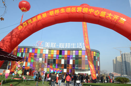 12月14日上午,位于兴业路与文博路交汇处的美联·联邦生活区营销中心盛大开放。营销中心采用国际最新时尚设计理念,以色彩斑斓的玻璃贴包装整个建筑,似乎在告诉人们汉口生活也将变得丰富多彩。内部结构以大气为基调,时尚为主旋律,以艺术品的姿态面向江城,让人走进营销中心,仿佛走入一场盛大的艺术盛宴。